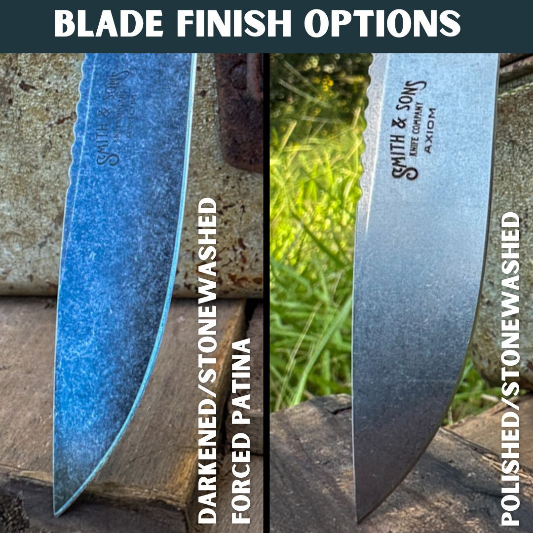 This finish isn’t a coating, it’s a controlled patina process that develops its own look over time. Expect shifts in tone as you use the knife, giving each blade its own distinct personality.