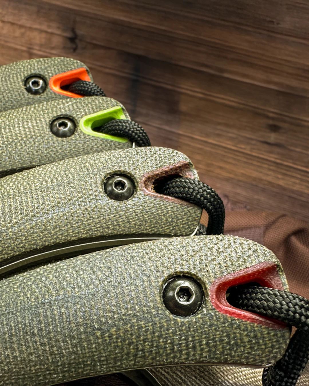 This version features OD Green canvas micarta as the base, with bold accent options to match your style: blaze orange, ruby red, toxic green, or natural micarta. Whether you lean towards subtle, earthy tones or want something that pops, we’ve got you covered.