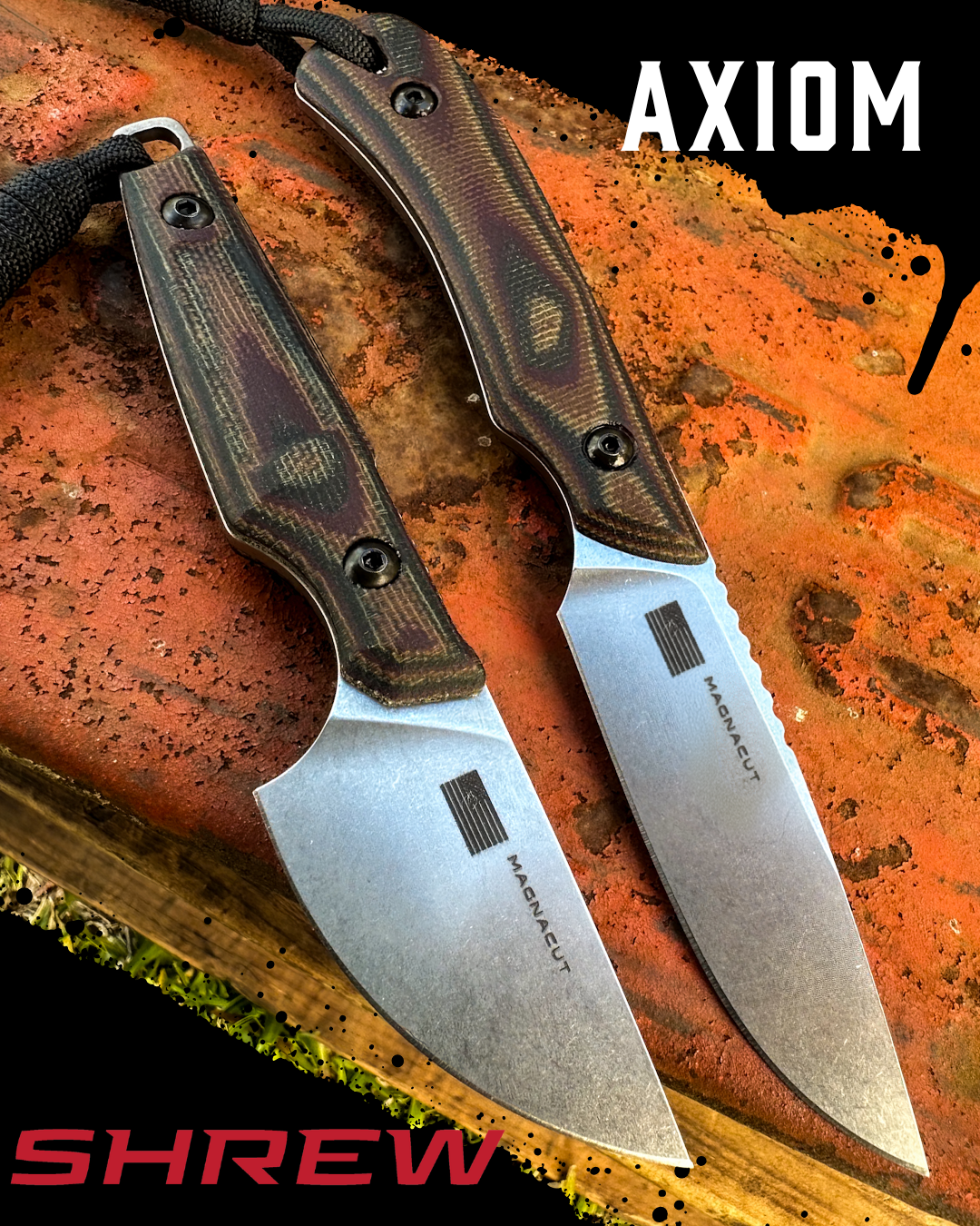 • Kydex: The Shrew is offered with a Kydex sheath designed for versatile carry and includes a paracord lanyard for neck carry or use with an optional belt-mounted clip.